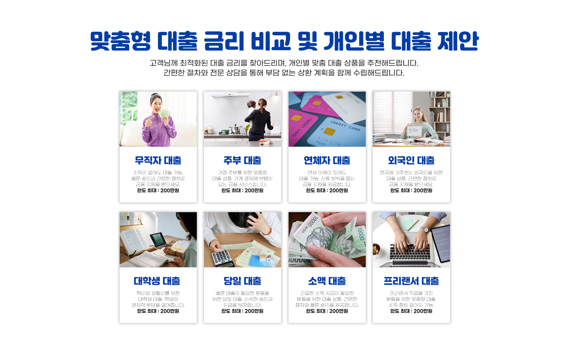 개인회생개시결정대출 | 신용회복대출 | 비상금대출 | 저축은행대출 | 담보대출 | 사회초년생대출 | 신용카드소지자대출 | 자영업자대출 | 무직자대출 | 모바일대출 | 직장인신용대출 | 프리랜서대출 | 무직자소액대출 | 주부대출 | 채무통합대환대출 | 개인회생자대출 | 아파트후순위담보대출 | 소상공인대출 | 기대출과다자추가대출 | 8등급저신용자대출 | 전월세보증금대출